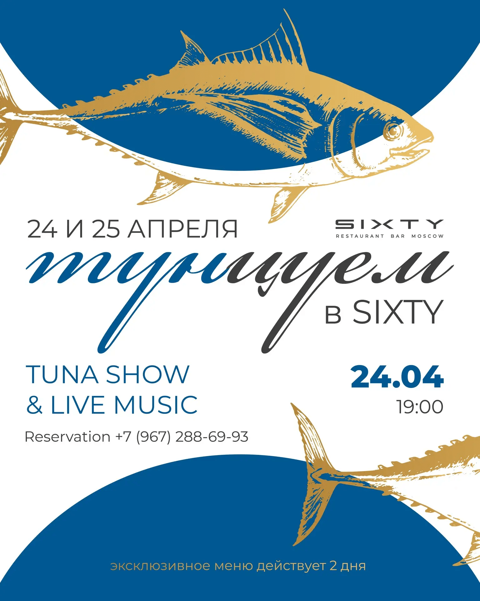 24 апреля в 19.00 ресторан SIXTY приглашает гостей на гастрономическое шоу: бренд-шеф SIXTY Егор Макаров вместе с приглашенным гостем, шефом японской и азиатской кухни Максимом Паком, работавшем не только в Москве, но и в Дубае и Токио, на глазах гостей разделают тушу 60-килограммового тунца, доставленного самолетом из Шри-Ланки.